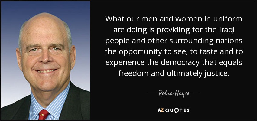 What our men and women in uniform are doing is providing for the Iraqi people and other surrounding nations the opportunity to see, to taste and to experience the democracy that equals freedom and ultimately justice.