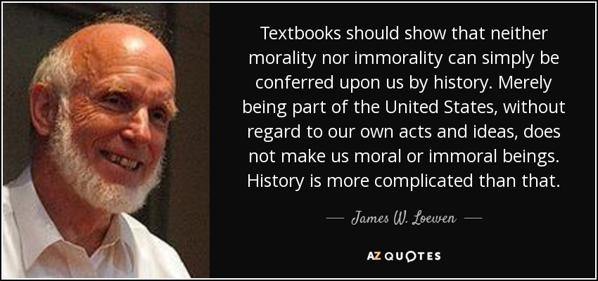 Textbooks should show that neither morality nor immorality can simply be conferred upon us by history. Merely being part of the United States, without regard to our own acts and ideas, does not make us moral or immoral beings. History is more complicated than that.