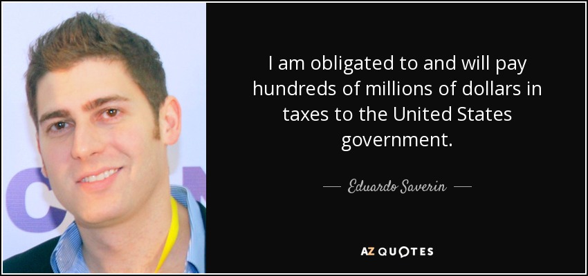 I am obligated to and will pay hundreds of millions of dollars in taxes to the United States government.