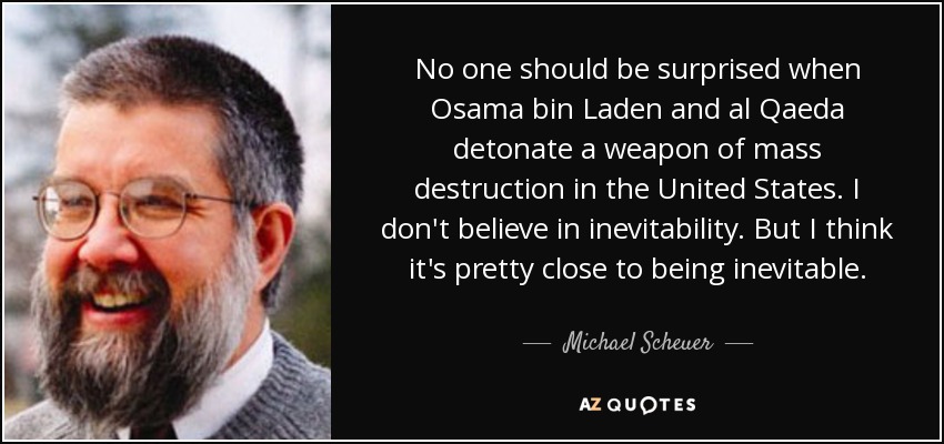 No one should be surprised when Osama bin Laden and al Qaeda detonate a weapon of mass destruction in the United States. I don't believe in inevitability. But I think it's pretty close to being inevitable.
