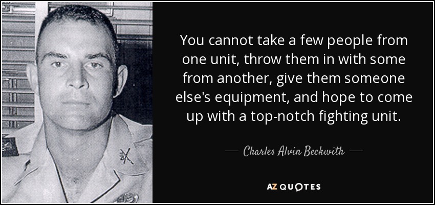 You cannot take a few people from one unit, throw them in with some from another, give them someone else's equipment, and hope to come up with a top-notch fighting unit.