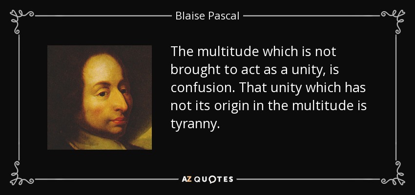 The multitude which is not brought to act as a unity, is confusion. That unity which has not its origin in the multitude is tyranny.