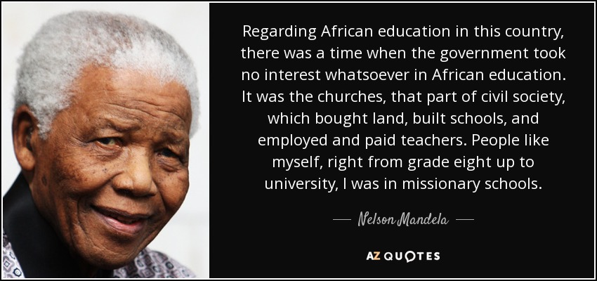 Regarding African education in this country, there was a time when the government took no interest whatsoever in African education. It was the churches, that part of civil society, which bought land, built schools, and employed and paid teachers. People like myself, right from grade eight up to university, I was in missionary schools.