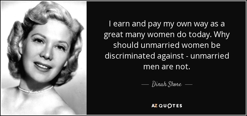 I earn and pay my own way as a great many women do today. Why should unmarried women be discriminated against - unmarried men are not.