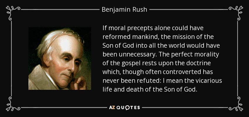 If moral precepts alone could have reformed mankind, the mission of the Son of God into all the world would have been unnecessary. The perfect morality of the gospel rests upon the doctrine which, though often controverted has never been refuted: I mean the vicarious life and death of the Son of God.
