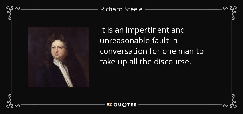 It is an impertinent and unreasonable fault in conversation for one man to take up all the discourse.