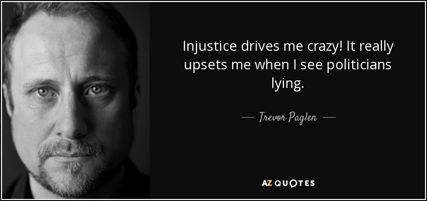 Injustice drives me crazy! It really upsets me when I see politicians lying.