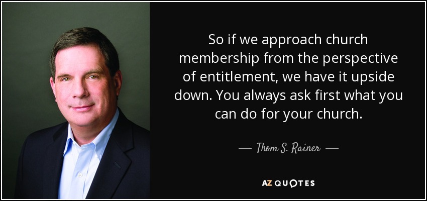 So if we approach church membership from the perspective of entitlement, we have it upside down. You always ask first what you can do for your church.