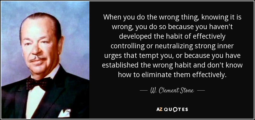 When you do the wrong thing, knowing it is wrong, you do so because you haven't developed the habit of effectively controlling or neutralizing strong inner urges that tempt you, or because you have established the wrong habit and don't know how to eliminate them effectively.