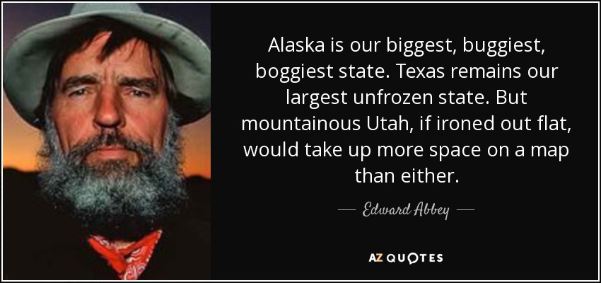 Alaska is our biggest, buggiest, boggiest state. Texas remains our largest unfrozen state. But mountainous Utah, if ironed out flat, would take up more space on a map than either.