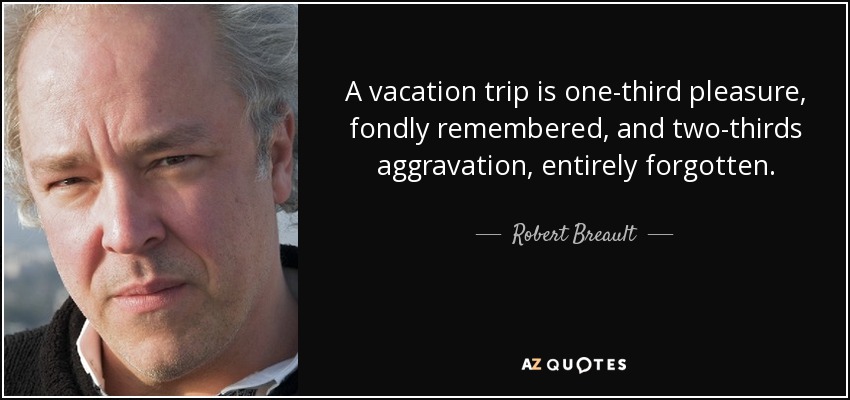 A vacation trip is one-third pleasure, fondly remembered, and two-thirds aggravation, entirely forgotten.