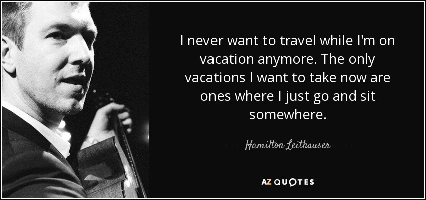 I never want to travel while I'm on vacation anymore. The only vacations I want to take now are ones where I just go and sit somewhere.