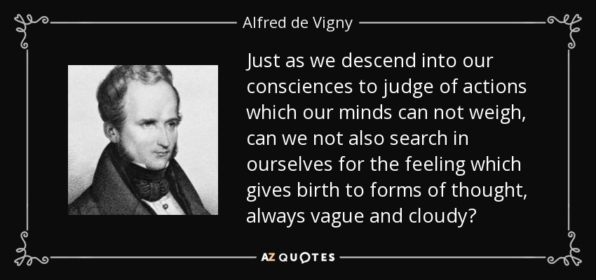 Just as we descend into our consciences to judge of actions which our minds can not weigh, can we not also search in ourselves for the feeling which gives birth to forms of thought, always vague and cloudy?