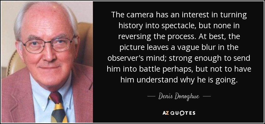 The camera has an interest in turning history into spectacle, but none in reversing the process. At best, the picture leaves a vague blur in the observer's mind; strong enough to send him into battle perhaps, but not to have him understand why he is going.