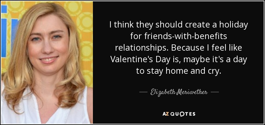 I think they should create a holiday for friends-with-benefits relationships. Because I feel like Valentine's Day is, maybe it's a day to stay home and cry.