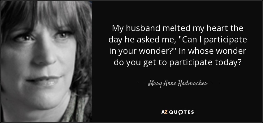 My husband melted my heart the day he asked me, "Can I participate in your wonder?" In whose wonder do you get to participate today?