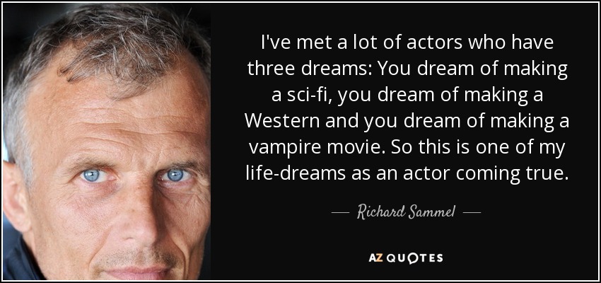 I've met a lot of actors who have three dreams: You dream of making a sci-fi, you dream of making a Western and you dream of making a vampire movie. So this is one of my life-dreams as an actor coming true.
