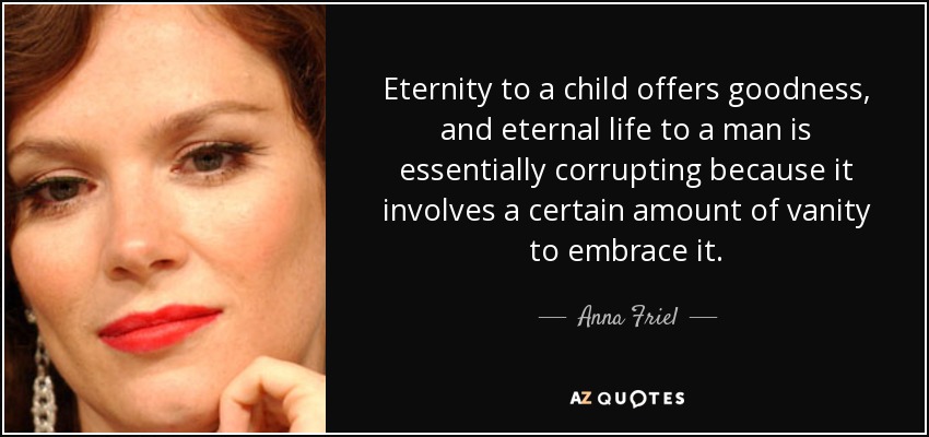 Eternity to a child offers goodness, and eternal life to a man is essentially corrupting because it involves a certain amount of vanity to embrace it.