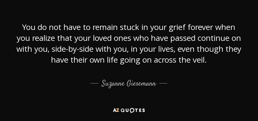 You do not have to remain stuck in your grief forever when you realize that your loved ones who have passed continue on with you, side-by-side with you, in your lives, even though they have their own life going on across the veil.