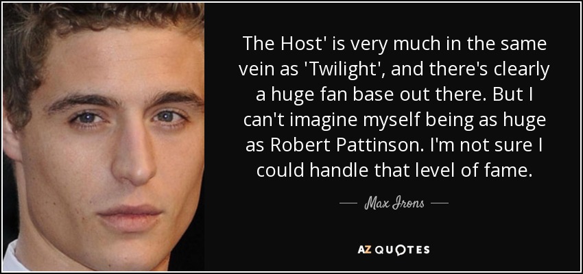 The Host' is very much in the same vein as 'Twilight', and there's clearly a huge fan base out there. But I can't imagine myself being as huge as Robert Pattinson. I'm not sure I could handle that level of fame.