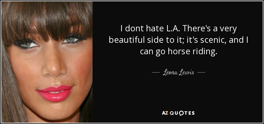 I dont hate L.A. There's a very beautiful side to it; it's scenic, and I can go horse riding.