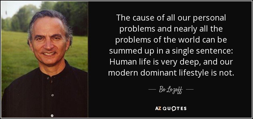 The cause of all our personal problems and nearly all the problems of the world can be summed up in a single sentence: Human life is very deep, and our modern dominant lifestyle is not.