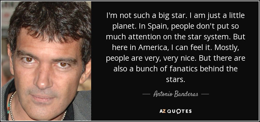 I'm not such a big star. I am just a little planet. In Spain, people don't put so much attention on the star system. But here in America, I can feel it. Mostly, people are very, very nice. But there are also a bunch of fanatics behind the stars.