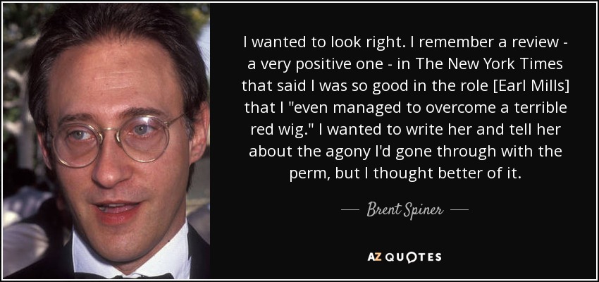 I wanted to look right. I remember a review - a very positive one - in The New York Times that said I was so good in the role [Earl Mills] that I "even managed to overcome a terrible red wig." I wanted to write her and tell her about the agony I'd gone through with the perm, but I thought better of it.