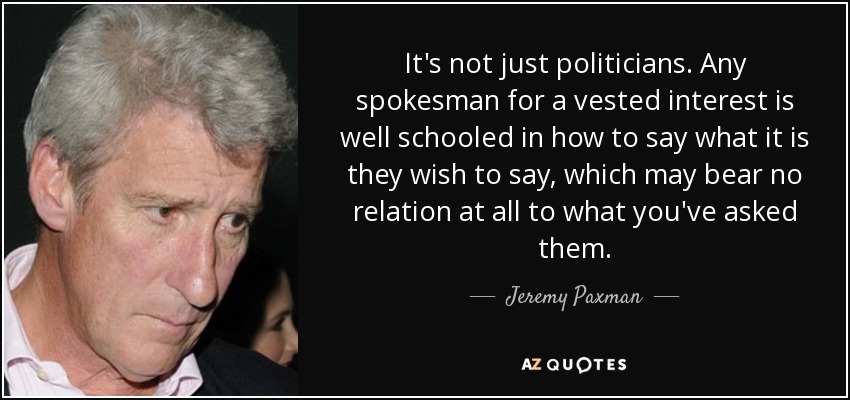It's not just politicians. Any spokesman for a vested interest is well schooled in how to say what it is they wish to say, which may bear no relation at all to what you've asked them.