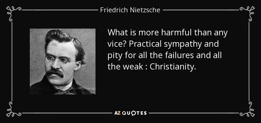 What is more harmful than any vice? Practical sympathy and pity for all the failures and all the weak : Christianity.