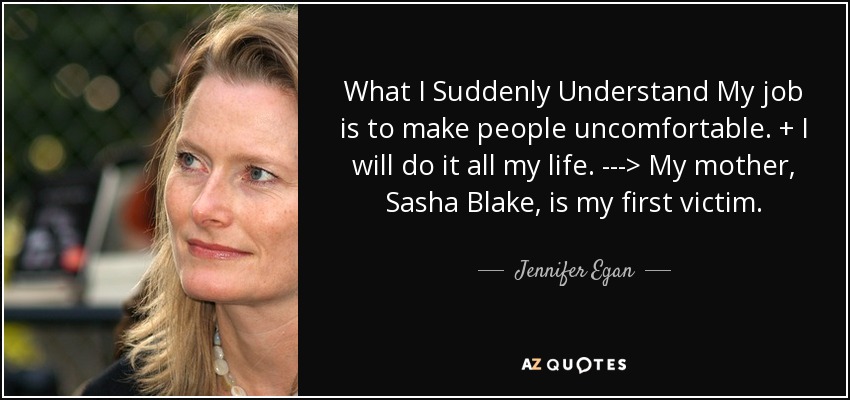 What I Suddenly Understand My job is to make people uncomfortable. + I will do it all my life. ---> My mother, Sasha Blake, is my first victim.