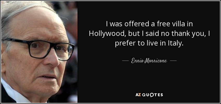 I was offered a free villa in Hollywood, but I said no thank you, I prefer to live in Italy.