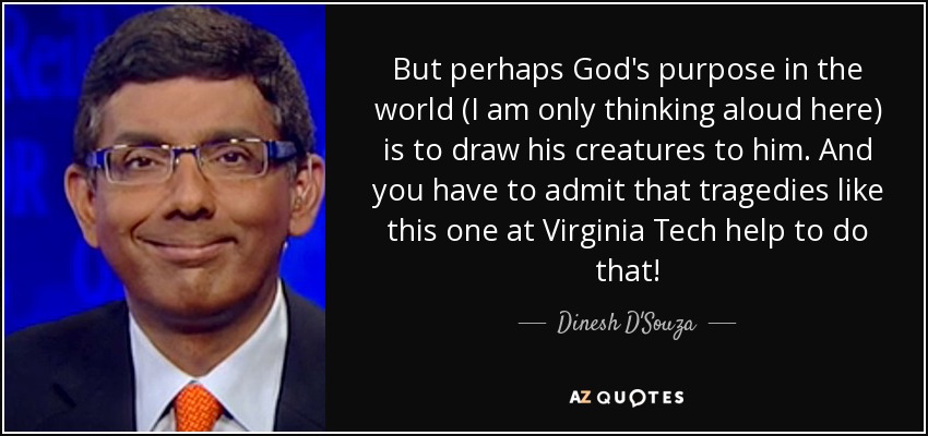 But perhaps God's purpose in the world (I am only thinking aloud here) is to draw his creatures to him. And you have to admit that tragedies like this one at Virginia Tech help to do that!