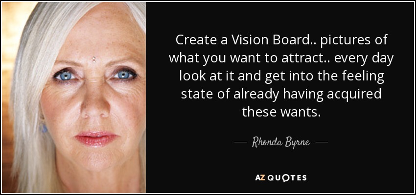I have vision boards, and people think that I put the vision board up and I look at it all the time, but what I do is, when I'm having an emotional time and I'm stressed out or feeling bad, I go to the store and get all the stuff for a vision board. Instead of channeling the negative thoughts or being depressed, I change it around and I start making boards.
