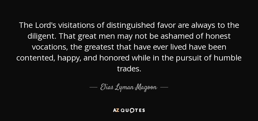 The Lord's visitations of distinguished favor are always to the diligent. That great men may not be ashamed of honest vocations, the greatest that have ever lived have been contented, happy, and honored while in the pursuit of humble trades.