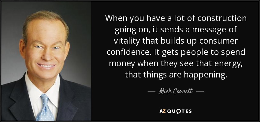 When you have a lot of construction going on, it sends a message of vitality that builds up consumer confidence. It gets people to spend money when they see that energy, that things are happening.