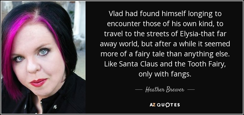 Vlad had found himself longing to encounter those of his own kind, to travel to the streets of Elysia-that far away world, but after a while it seemed more of a fairy tale than anything else. Like Santa Claus and the Tooth Fairy, only with fangs.
