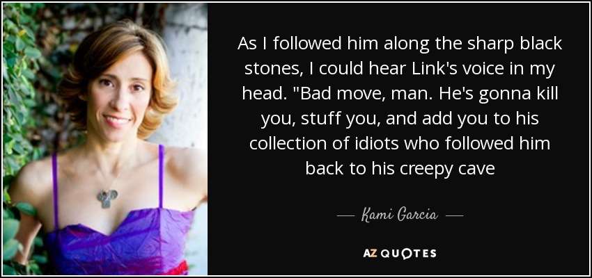 As I followed him along the sharp black stones, I could hear Link's voice in my head. "Bad move, man. He's gonna kill you, stuff you, and add you to his collection of idiots who followed him back to his creepy cave
