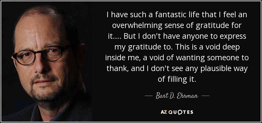 I have such a fantastic life that I feel an overwhelming sense of gratitude for it. . . . But I don't have anyone to express my gratitude to. This is a void deep inside me, a void of wanting someone to thank, and I don't see any plausible way of filling it.