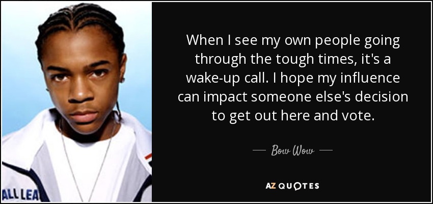 When I see my own people going through the tough times, it's a wake-up call. I hope my influence can impact someone else's decision to get out here and vote.