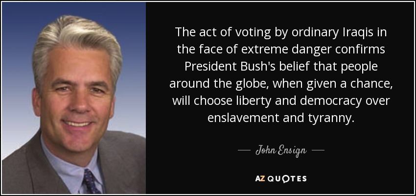The act of voting by ordinary Iraqis in the face of extreme danger confirms President Bush's belief that people around the globe, when given a chance, will choose liberty and democracy over enslavement and tyranny.