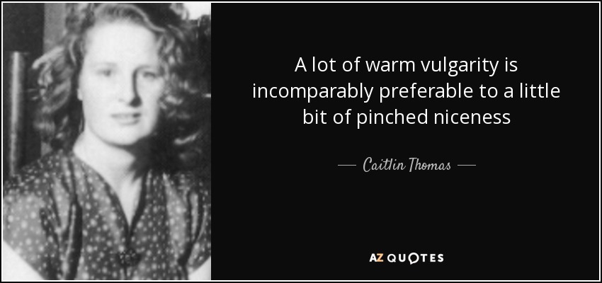 A lot of warm vulgarity is incomparably preferable to a little bit of pinched niceness