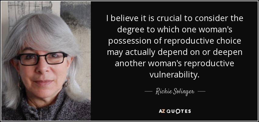 I believe it is crucial to consider the degree to which one woman's possession of reproductive choice may actually depend on or deepen another woman's reproductive vulnerability.