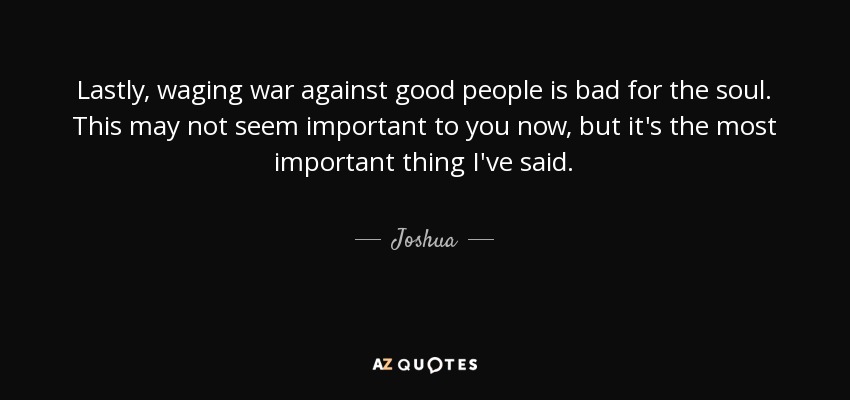 Lastly, waging war against good people is bad for the soul. This may not seem important to you now, but it's the most important thing I've said.