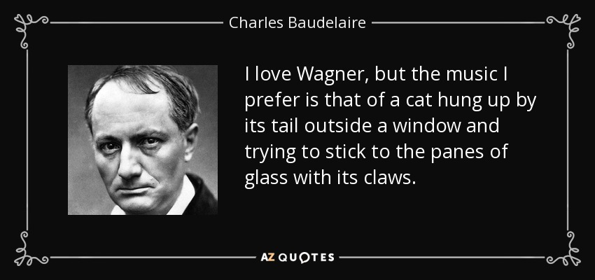 I love Wagner, but the music I prefer is that of a cat hung up by its tail outside a window and trying to stick to the panes of glass with its claws.
