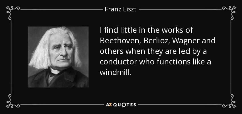 I find little in the works of Beethoven, Berlioz, Wagner and others when they are led by a conductor who functions like a windmill.