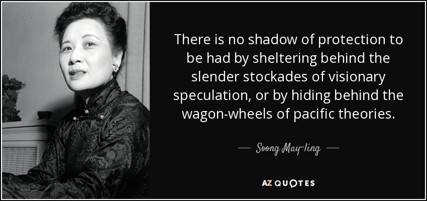 There is no shadow of protection to be had by sheltering behind the slender stockades of visionary speculation, or by hiding behind the wagon-wheels of pacific theories.