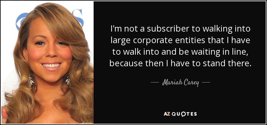 I'm not a subscriber to walking into large corporate entities that I have to walk into and be waiting in line, because then I have to stand there.