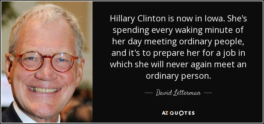Hillary Clinton is now in Iowa. She's spending every waking minute of her day meeting ordinary people, and it's to prepare her for a job in which she will never again meet an ordinary person.