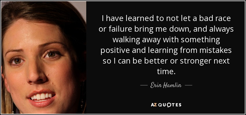 I have learned to not let a bad race or failure bring me down, and always walking away with something positive and learning from mistakes so I can be better or stronger next time.